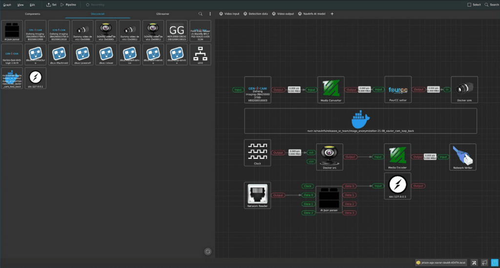 To use all the features V2 offers, a bit more configuration is required. For example, V2 supports a wide range of cameras (V4L, GenICam, ONVIF, etc.). To use these as an input for the Deepstream 6 container, there is support for the V4L loopback driver. However, not all cameras output the correct video format, so a couple of components may be needed to transform it.
